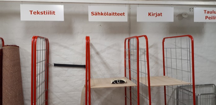 Tuo pois antamasi tavarat meille myymälän aukioloaikoina. Lajittele tavarat valmiiksi jo kotona, niin ne on helppo jättää vastaanottopisteen rullakoihin.