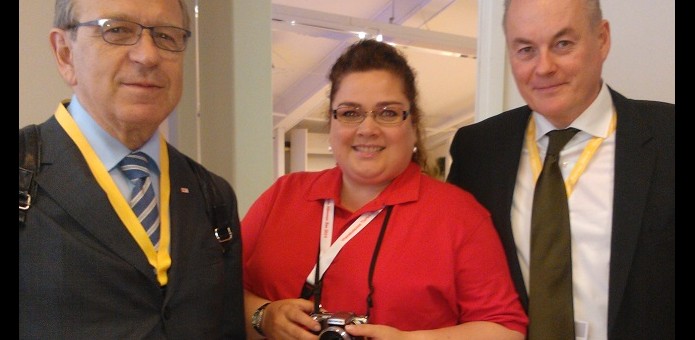 "Katja osallistui vapaaehtoistehtäviin valokuvaajana SPR Yleiskokouksessa 7.-8.6.2014, kuvassa mukana Erkki Liikanen ja Arto Nyberg"