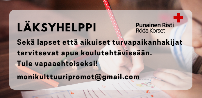 Kiinnostaisiko sinua tutustua ihmisiin, jotka tulevat muista kulttuureista? Olisiko sinusta mukava kertoa muille omasta kulttuuristasi? Haluatko harjoitella suomen kieltä? Haluatko edistää hyväksyvää ja monimuotoista yhteiskuntaa? Tervetuloa mukaan Punaisen Ristin kotoutumista tukevaan toimintaan!