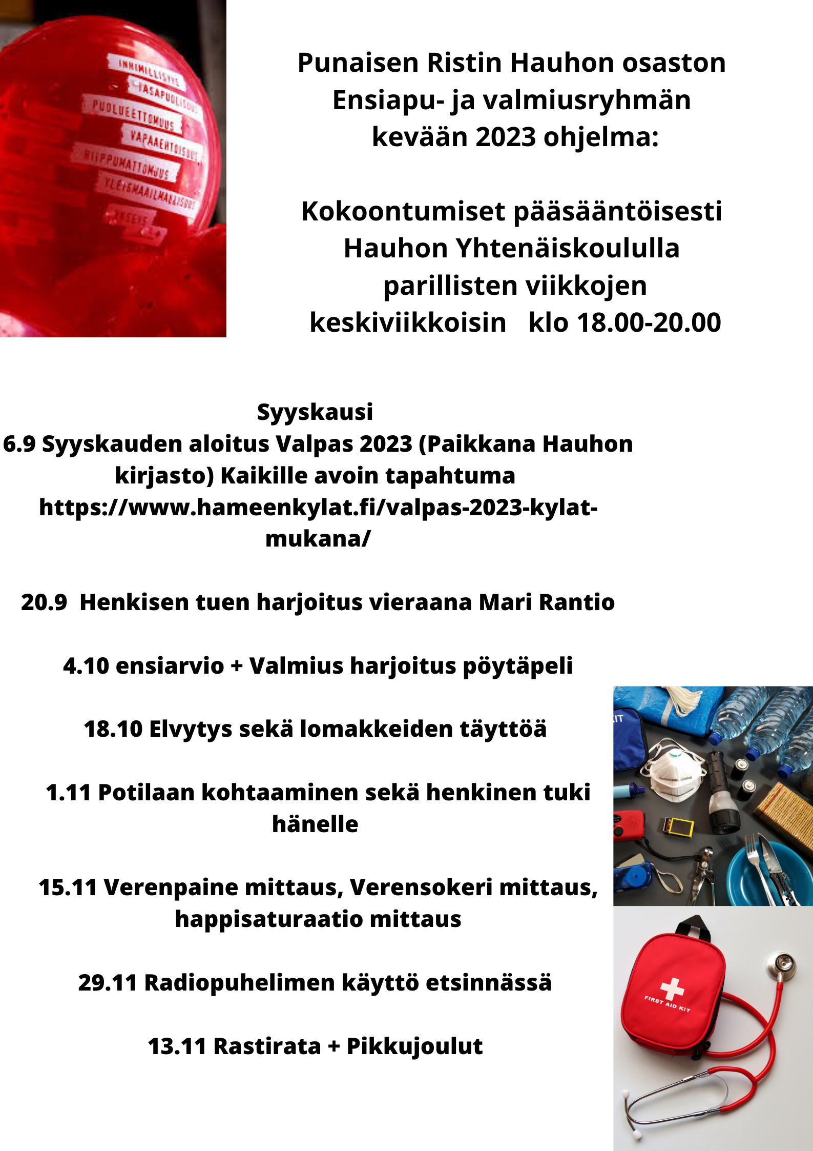 Punaisen Ristin Hauhon osaston Ensiapu- ja valmiusryhmän kevään 2025 ohjelma: