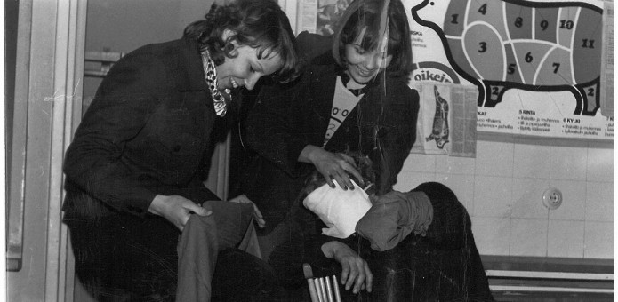 "Mirja ja Anu Lempäälän ja Vesilahden ryhmien yhteisharjotuksessa 1974 Kanavan Koululla"