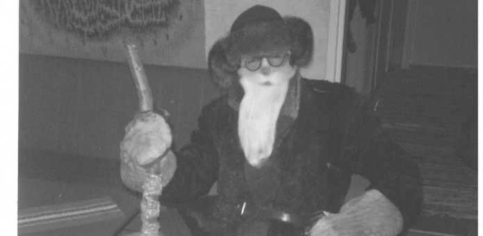 "Pukkipalvelun joulupukki istahtanut hetkeksi kesken aattokiireittensä"