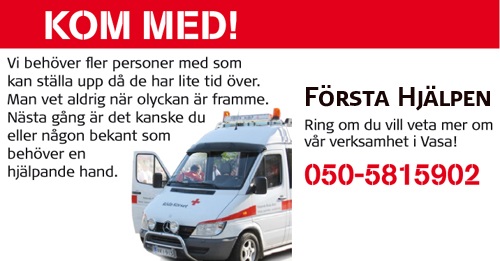 I Vasas första hjälpen-gruppen finns gruppmedlemmar från flera närliggande avdelningar, alla är välkomna! Vårt mål är att trivas tillsammans, ha roligt och träffas för att upprätthålla våra kunskaper och utvecklas.