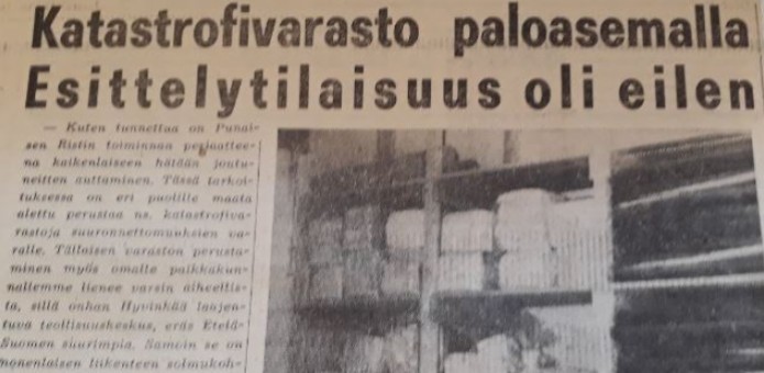 "Osasto piti yllä katastrofivarastoa suuronnettomuuksien varalle vuodesta 1960 alkaen, ensin elintarviketarkastamon ja paloaseman tiloissa, 1970-luvulla kirjastotalon väestösuojassa ja myöhemmin osaston omissa varasto- ja kokoustiloissa. Hyvinkään Sanomien lehtijuttu osaston perustamasta katastrofivarastosta 26.5.1962."