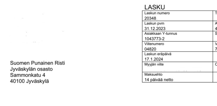 Jotta skannauspalvelu voi kohdistaa laskunne, tulee tämä laskutusosoite tulostaa myös itse laskuun, eikä pelkästään kirjekuoreen. Tähän laskutusosoitteeseen ei tule lähettää muuta materiaalia kuin laskuja, eli esimerkiksi tiedotusten ja markkinointimateriaalin postiosoite pysyy ennallaan.